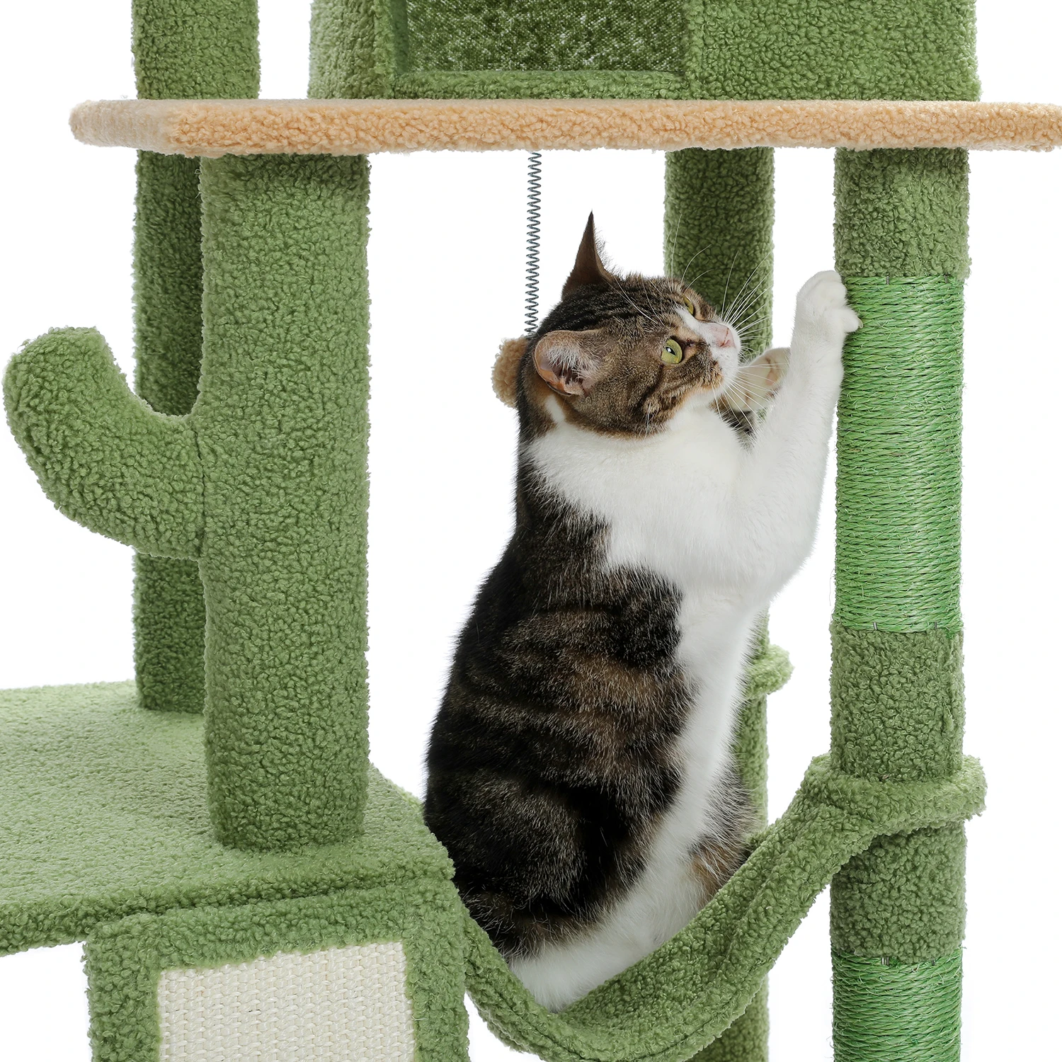 Adjustable 216-285cm Height Cactus Cat Tree with Condo Hammock High Cat Tower Scratching Post for Cat Jumping Platform Cat Toys